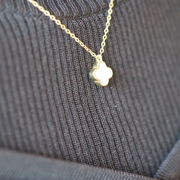 ラッキーアイテム、四つ葉のクローバーを胸元に